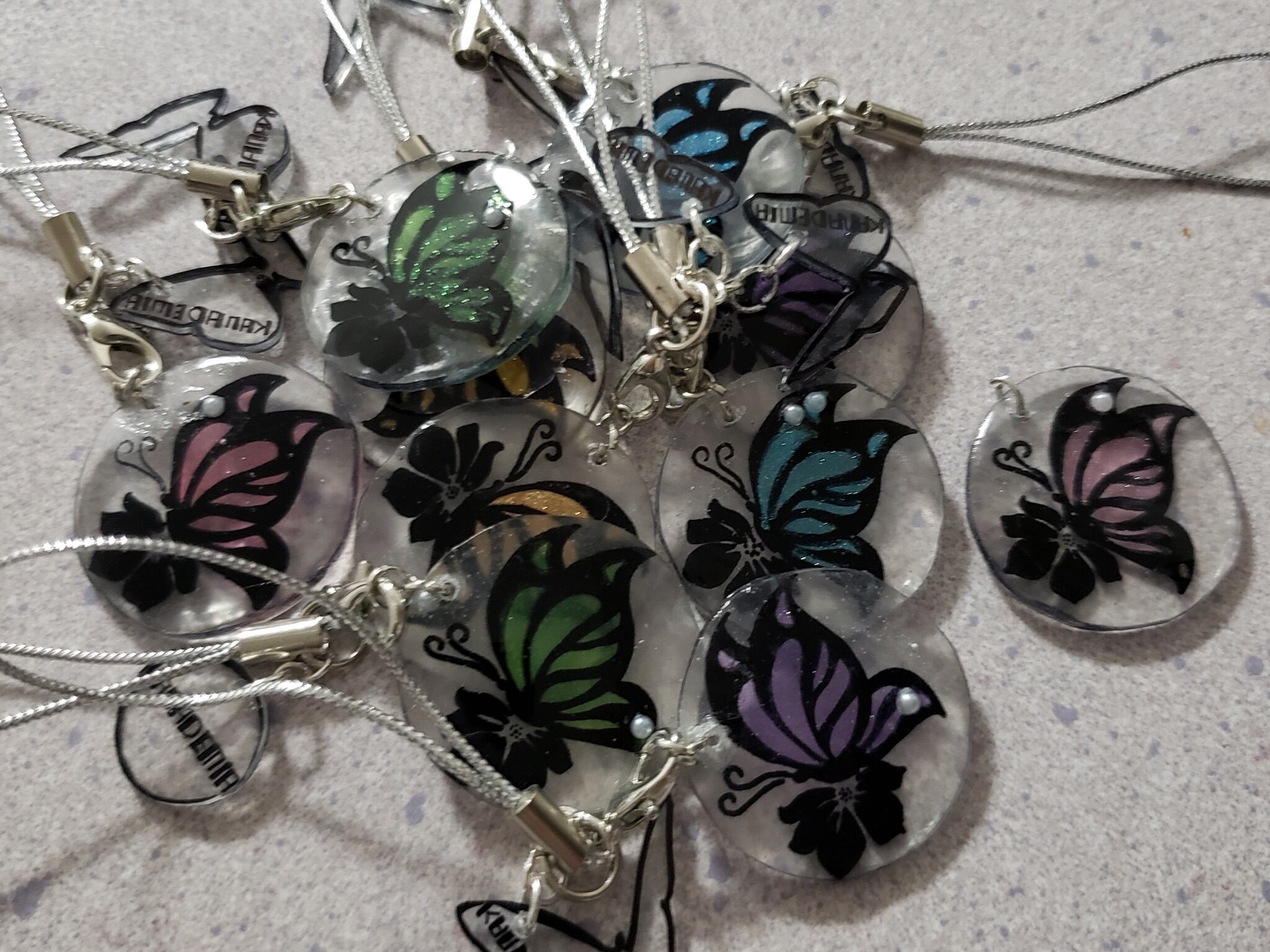 新型コロナ禍からの再生を祈り、花と蝶をイメージしたロゴ付きの可愛いキーホルダーです。キーホルダーとして以外にもバック等身近に着け置いてご愛用ください。 工房✱YuiLand✱(作家 神崎由衣 )製作のオリジナル限定作品です。 送料税込み価格(寄付金¥1000含)。 Key 》です。